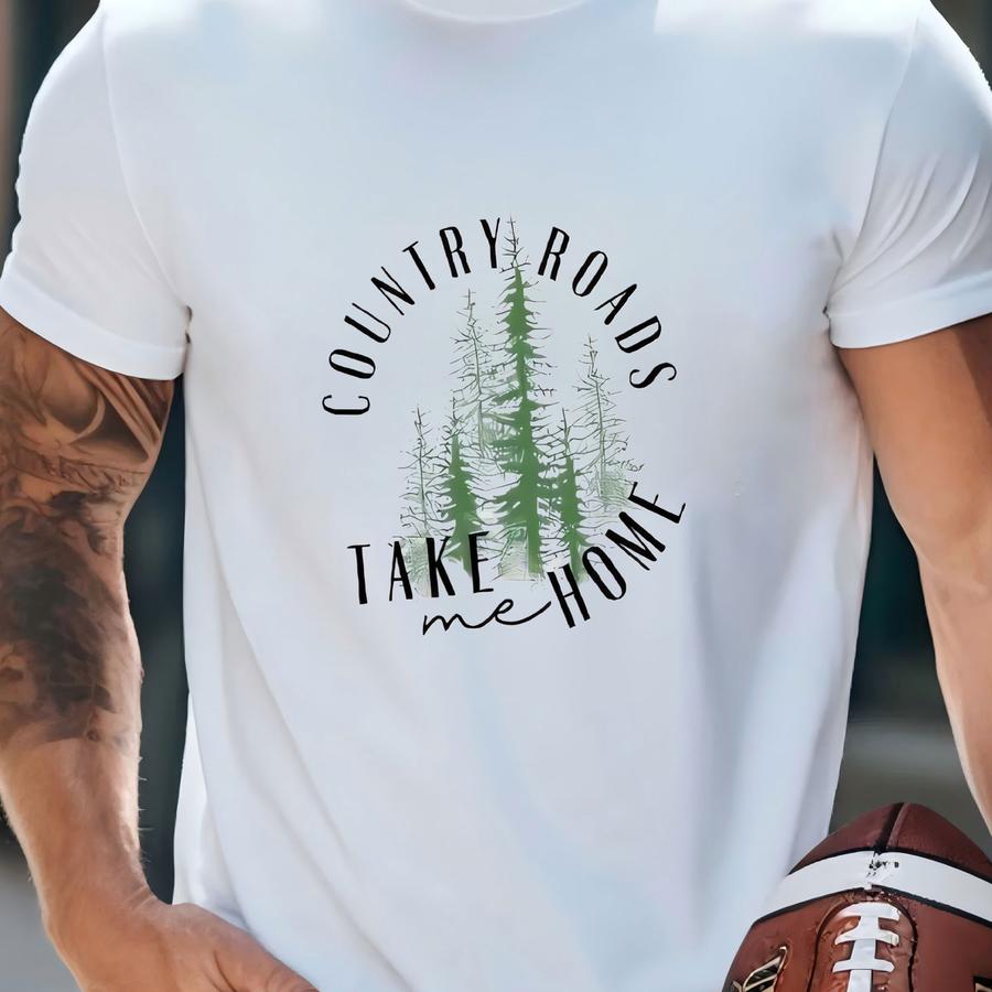 Country Roads Take Me Home Unisex Jersey Short Sve Tee, Vintage Outdoor Tee, Pine Trees, Western Tee, Concert Tee, Cowboy Cowgirl Tee, T-shirt