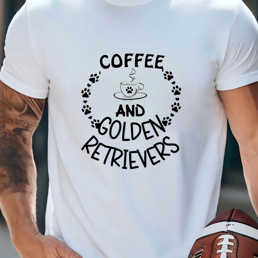 Coffee And Golden Retrievers, Golden Retriever Mom Shirt, Cute Dog, Dog Mom Shirt, Golden Retriever Hoodie, Golden Retriever Lover Shirt T-shirt