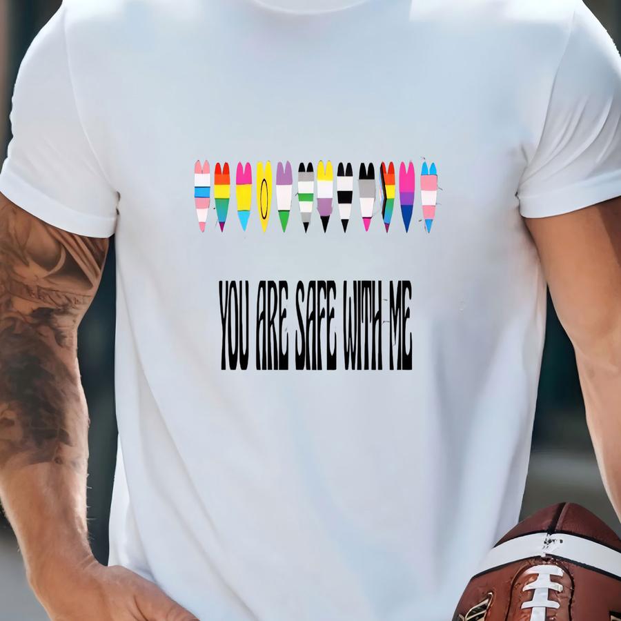 Pride Ally Shirt, Lgbtq Flags Ally Tee, Lgbt Support Outfit, Rainbow Pride Shirt, You Are Safe With Me T-shirt