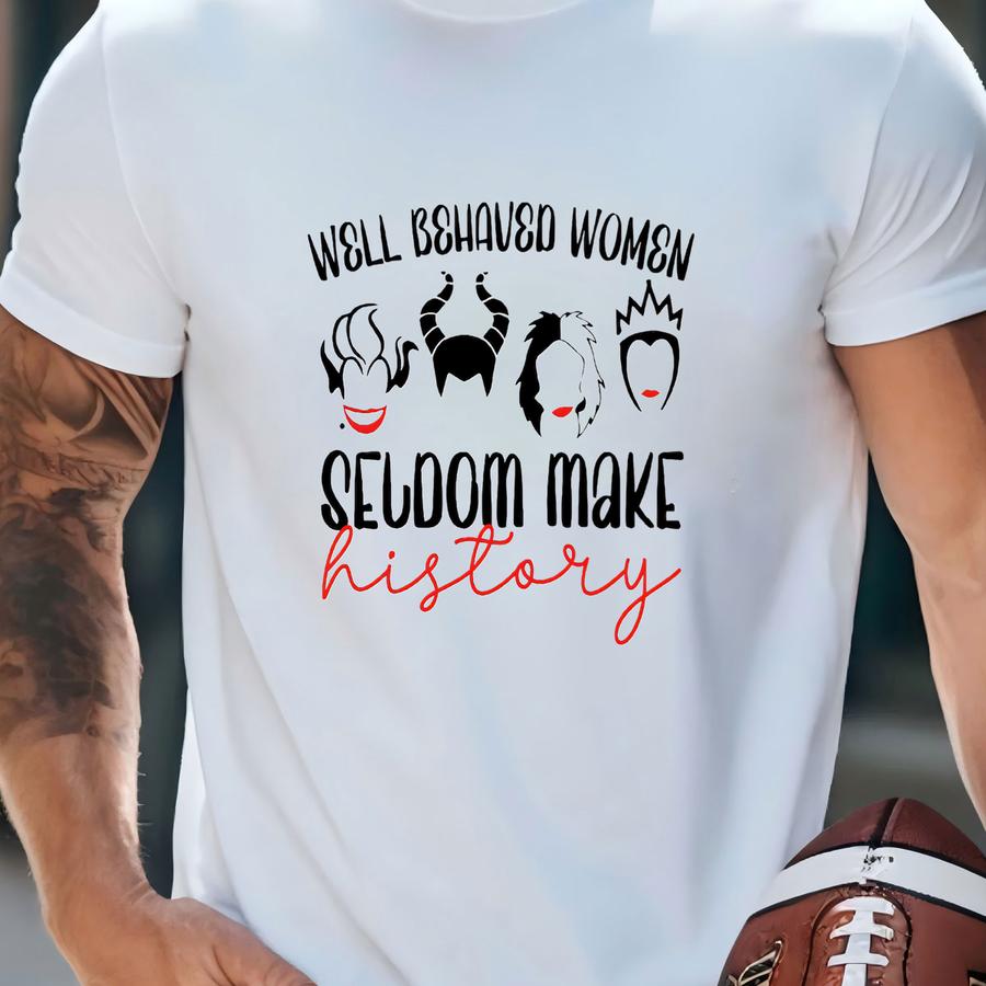 Well Behaved Women Seldom Make History, Adult Hoodie, Funny Villains, Cruella, Ursula, Evil Queen Shirt T-shirt