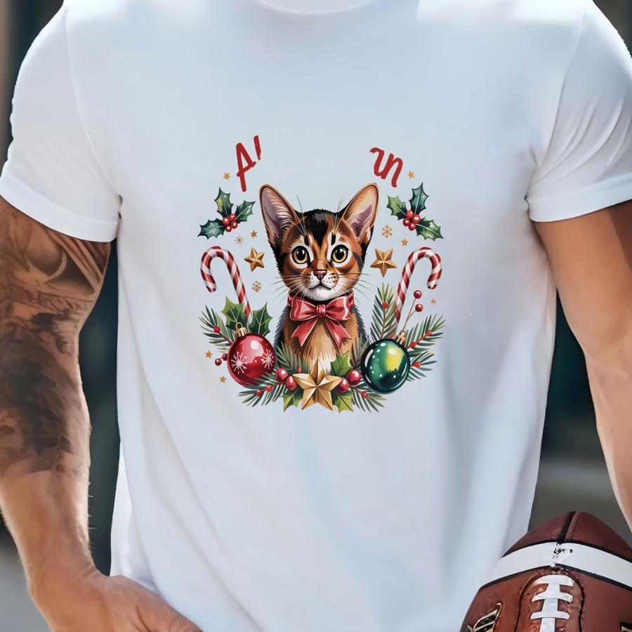 Abyssinian Cat Sweatshirt: Holiday Graphic, Festive Design, Cute Kitten T-shirt