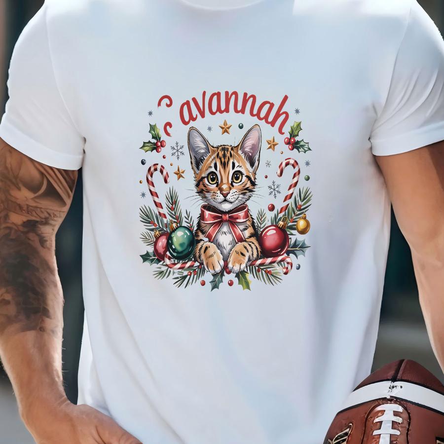 Savannah Cat Sweatshirt: Festive Kitten, Holiday Design, Christmas Sweatshirt T-shirt