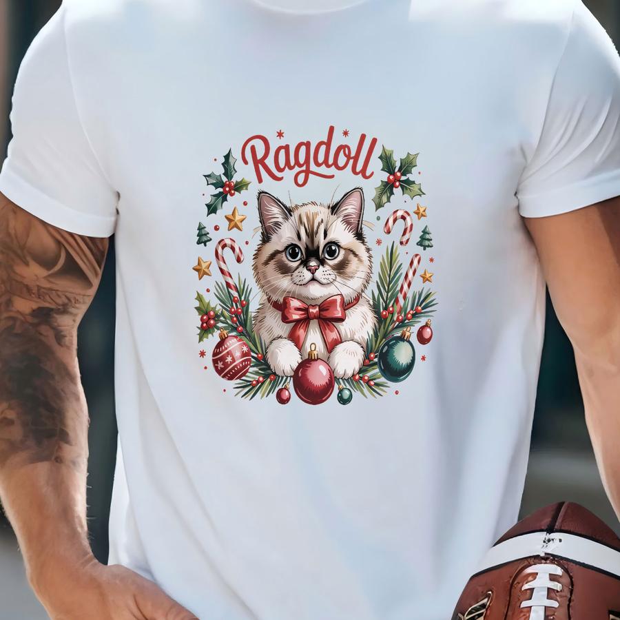 Ragdoll Cat Sweatshirt: Holiday, Festive, Christmas, Pet, Bow, Ornament, Cute T-shirt