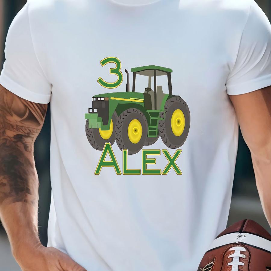 Boys Custom Tractor Truck Birthday Shirt, John Deer Personalized Birthday Shirt, Little Farmer Tshirt, Toddler Tractor Birthday Gift Tee T-shirt