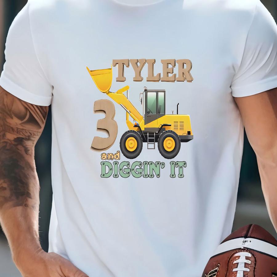 Boys Construction Birthday Shirt, Digger Personalized Birthday Shirt, Tractor Tshirt, Construction Crew Birthday Tee, Kids Custom Tee Gift T-shirt