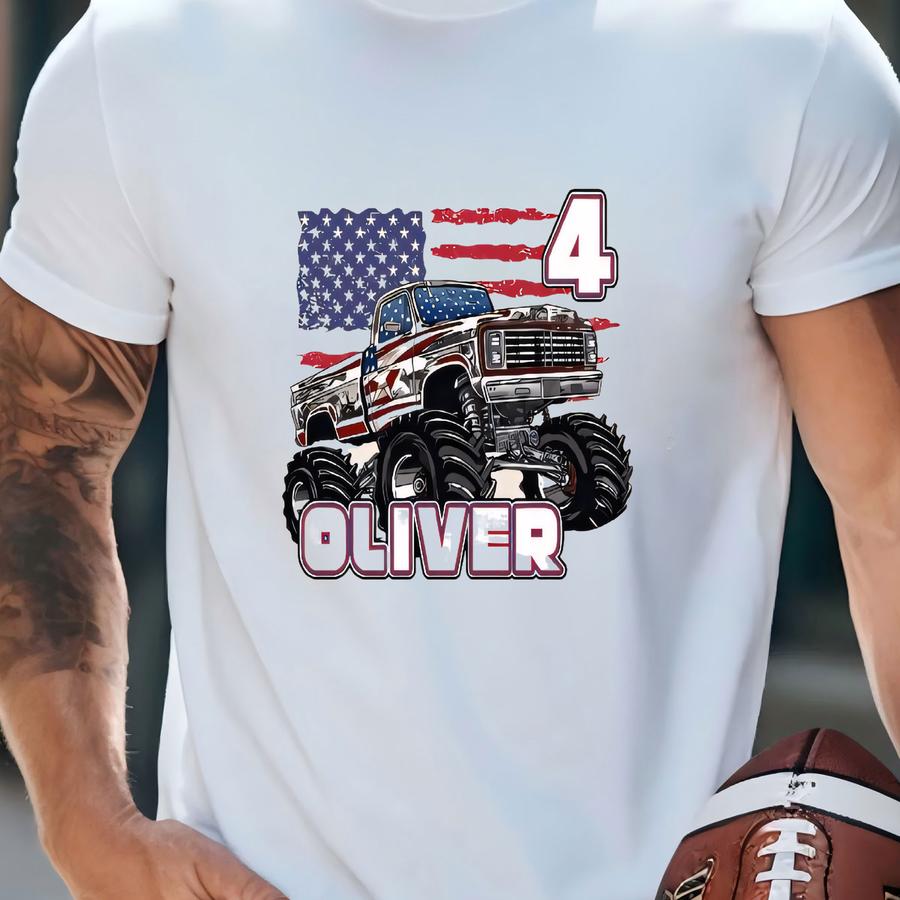 Custom Monster Truck Birthday Shirt, Monster Personalized Birthday Shirt, Usa Truck Tshirt, Boys Monster Truck Birthday Gift Tee, 3 Years T-shirt