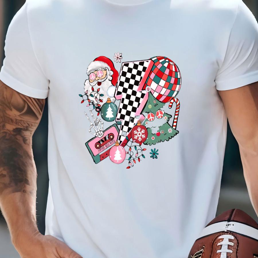 Retro Christmas Sweatshirt: Checkered Santa Unisex Crewneck T-shirt