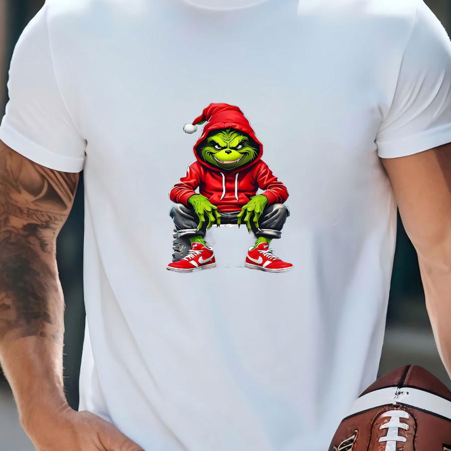 Urban Christmas Streetwear Sweatshirt, Cozy Crewneck With Red Hoodie Green Character Print T-shirt
