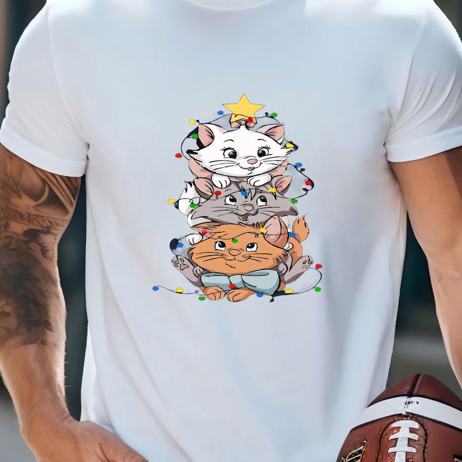 Christmas Cat Tree Hoodie, Holiday Kitty Tee With Lights T-shirt