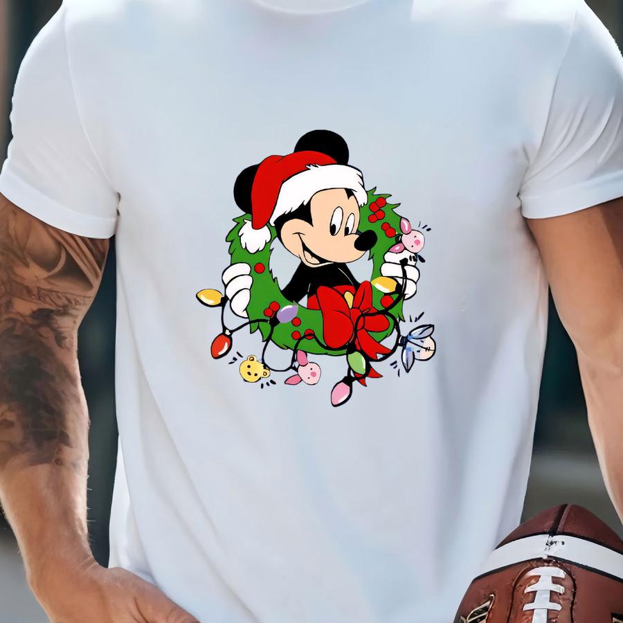 Christmas Cartoon Mouse Apron, Holiday Kitchen Gift With Santa Wreath Design T-shirt