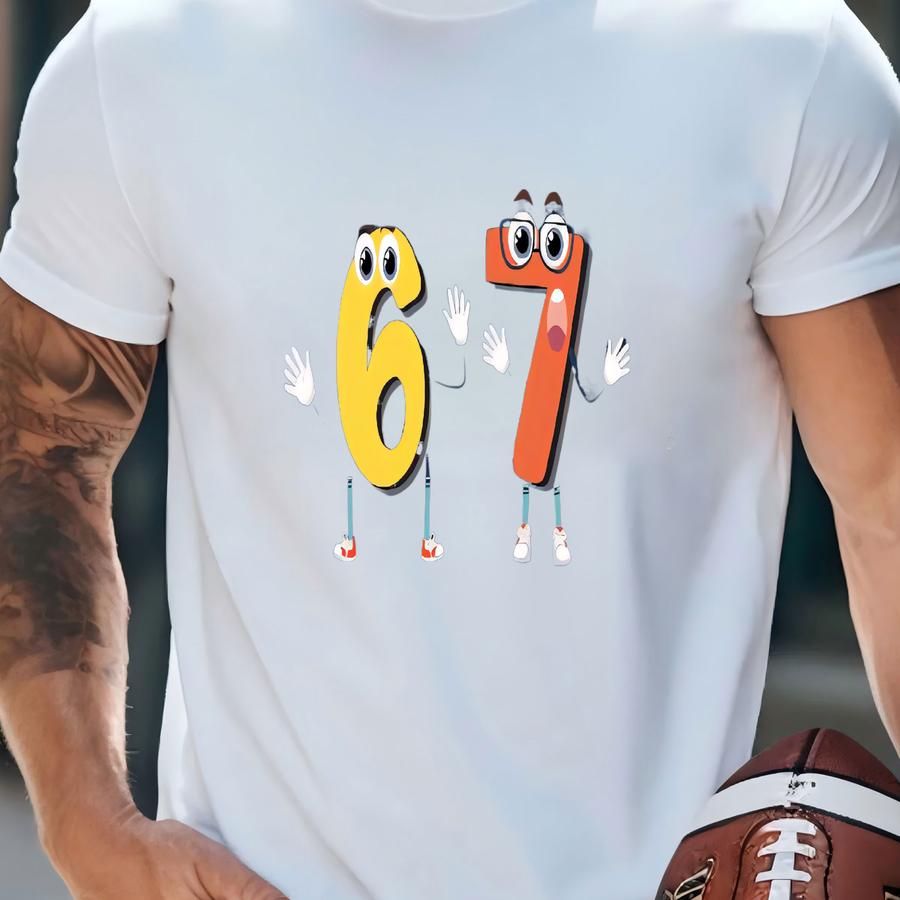 67 Cartoon Hoodie, Fun Graphic Sweatshirt With Number Characters, Novelty Birthday Gift T-shirt