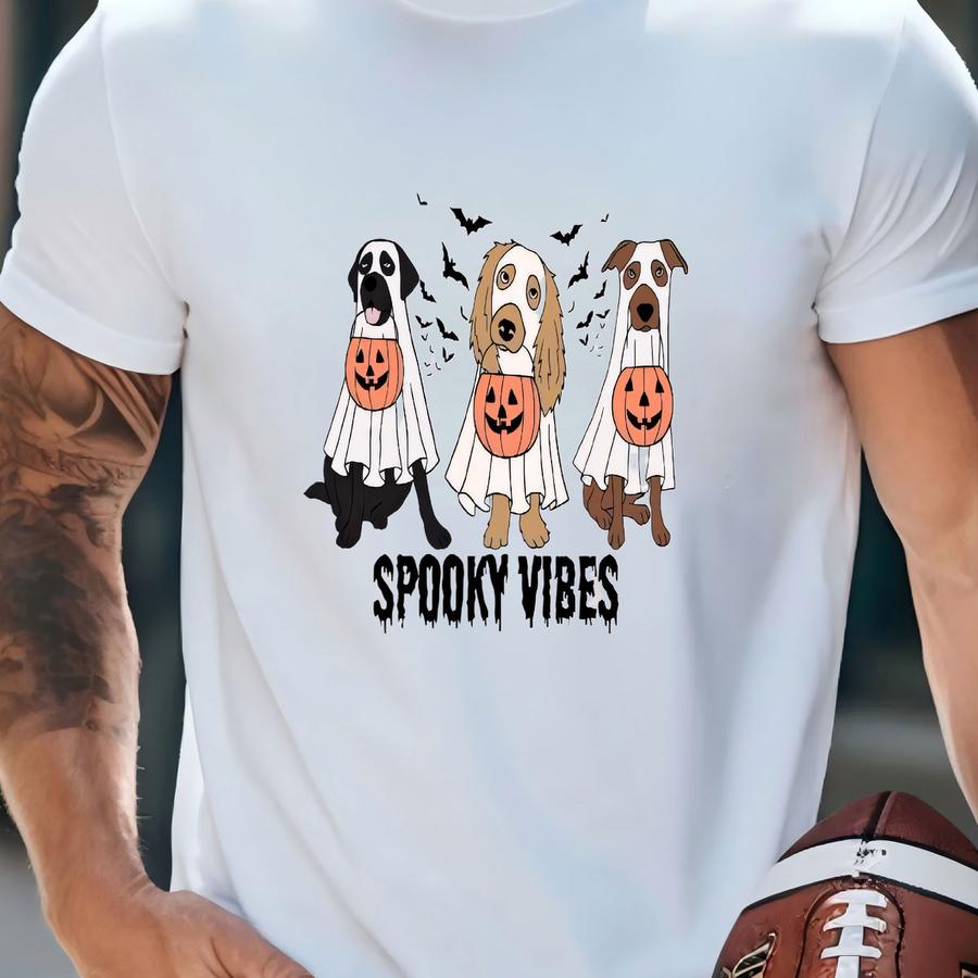 Spooky Vibes Dog Crop Top, Cute Halloween Shirt With Ghost Dogs And Pumpkins T-shirt