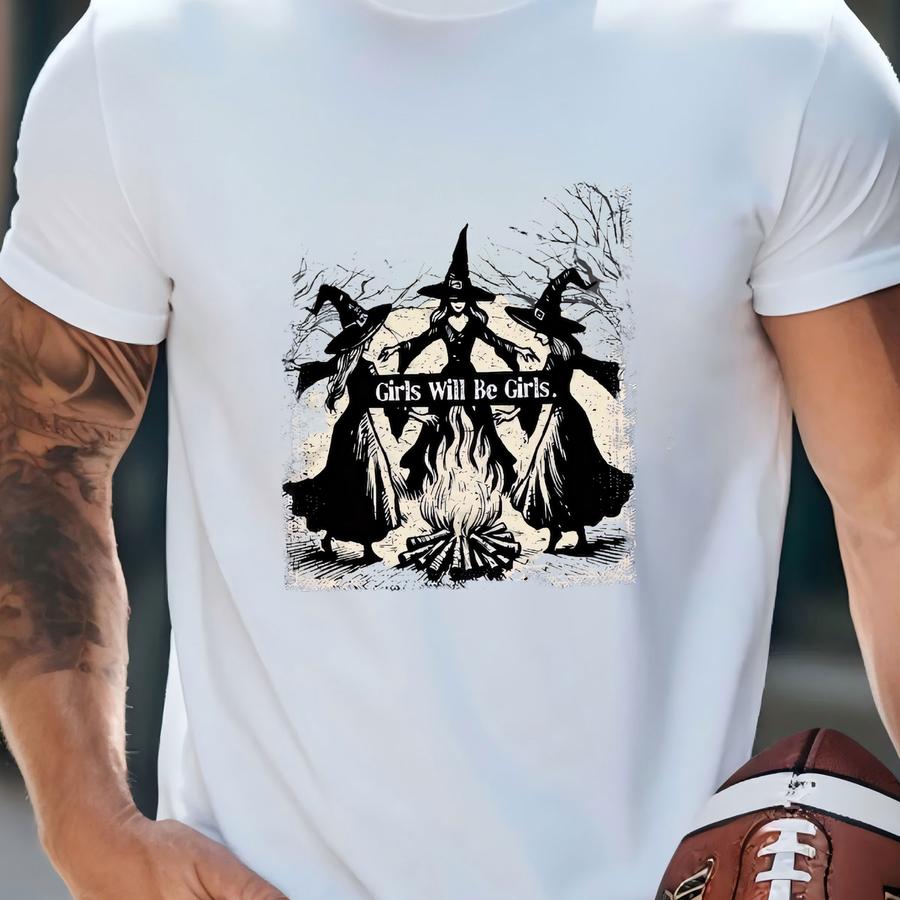 Witchy Crop Top, Shirt With Vintage Witches, Girls Will Be Girls Print Tee T-shirt