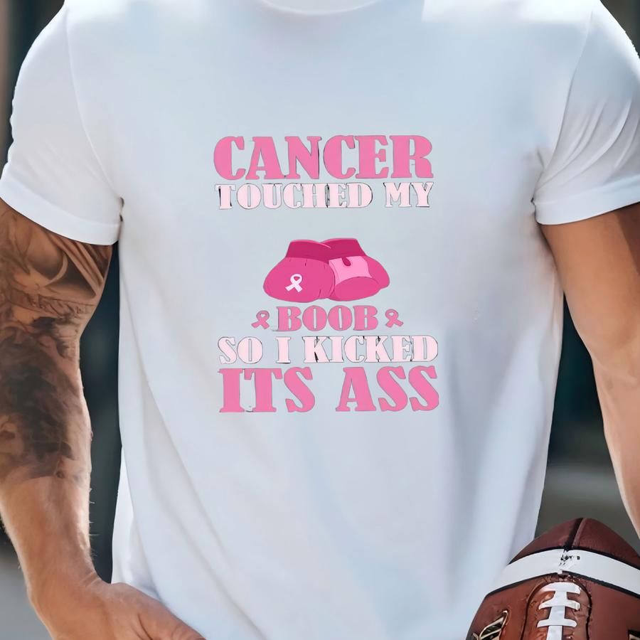 Cancer Touched My Boob So I Kicked Its Ass Sweatshirt, Breast Cancer Awareness Pink Ribbon Survivor Gift, Strong Woman Empowerment Sweater T-shirt