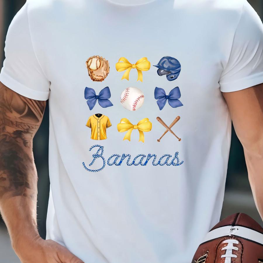 Bananas Bow Youth Shirt, Baseball Shirt, Coquette Baseball, Baseball Season, Banana Mascot, Let's Go Bananas, Kids Shirt, Baseball Bow T-shirt