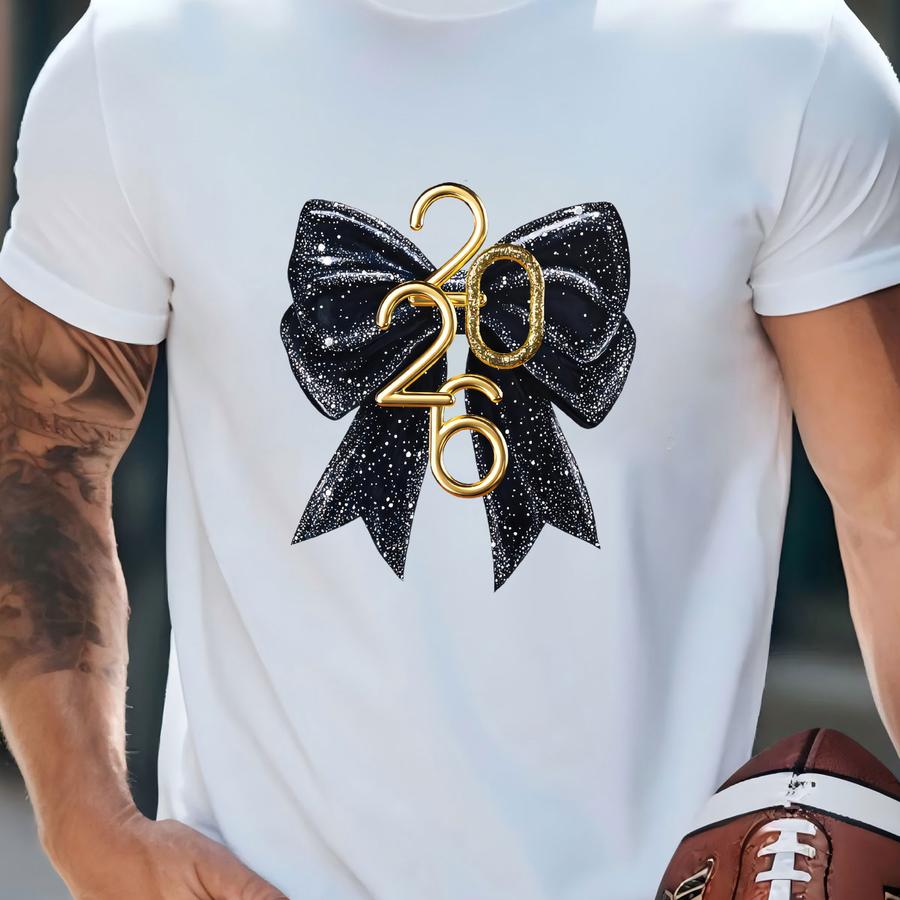 2026 Glitter Bow Sweatshirt: Nye Glam Pullover T-shirt