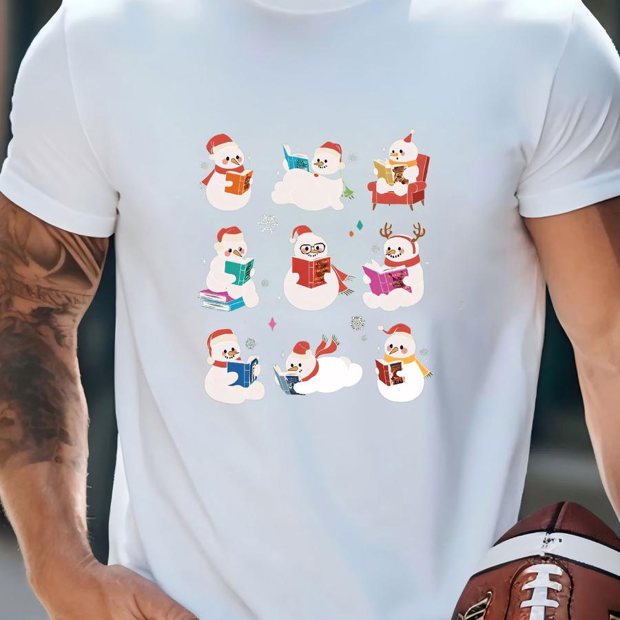 Snowman Reading Book Sweatshirt, Book Lover Gift Hoodie, Christmas Book Sweater, Christmas Book Club Sweatshirts Snowman Bookish Sweatshirt T-shirt