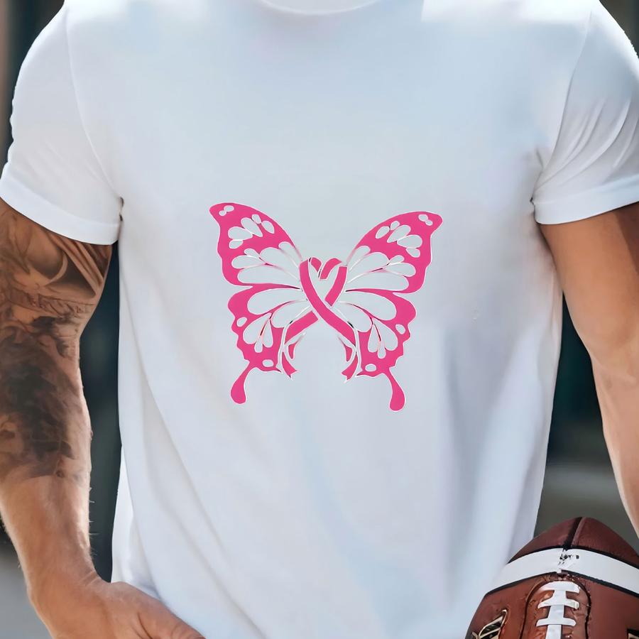 Survivor Gift Tee, Pink Ribbon Butterfly Breast Cancer Fighter T Shirt, Pink Ribbon Shirts, Pocket Breast Cancer Awareness Motivational Tees T-shirt