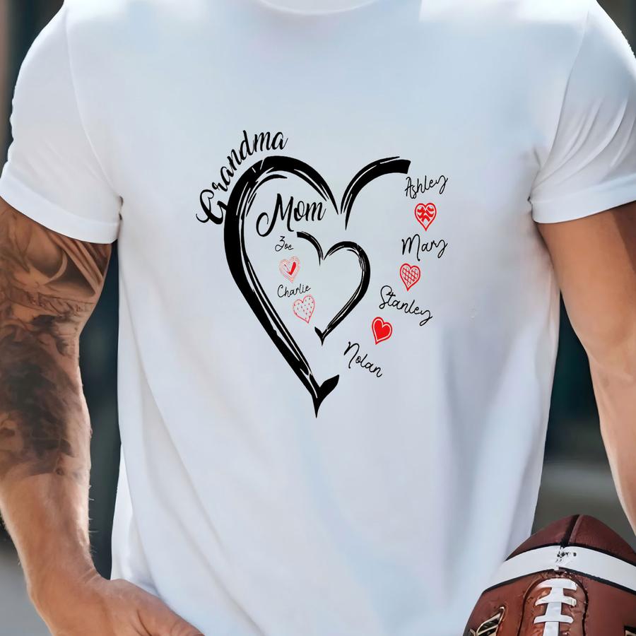 Custom Grandma Heart With Kids Name Sweatshirt, Mother's Day Gift T Shirt, Personalized Mom Love With Kid Names Tshirt, Mama Valentine Tee T-shirt