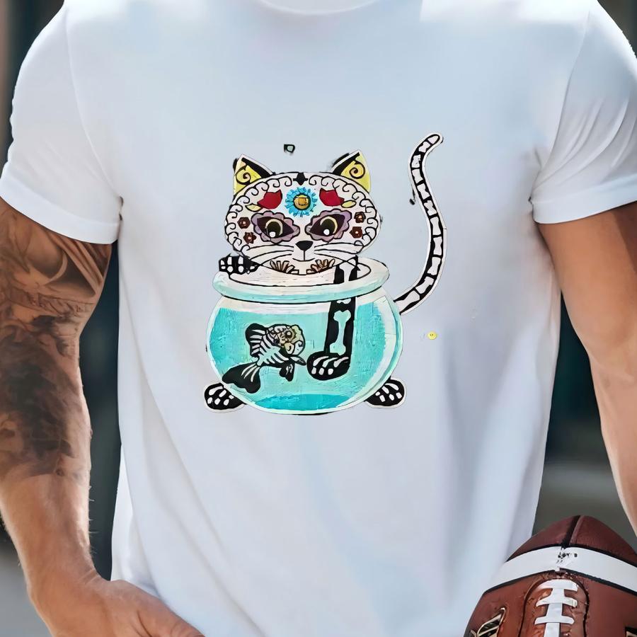 100% Cotton Fabric By The Yard Timeless Treasures Cat Skeletons Fishbowl C4159 Black T-shirt