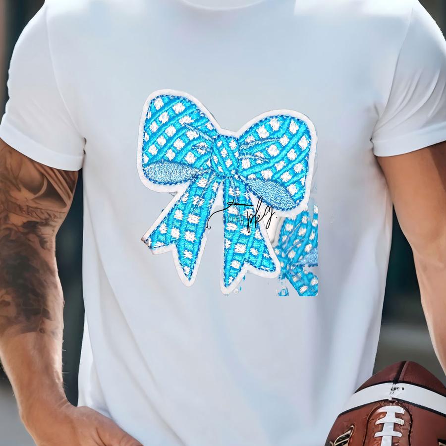 Blue And White Gingham Bow Patch - Iron On - Accessory - Americana - Trucker Hat - Patriotic Grandmillenial Accent T-shirt