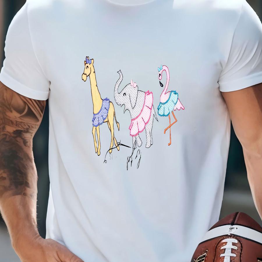 Tutu Zoo Animals Shirt - Giraffe Elephant Flamingo Ballerinas - Personalized Name - Girls Zoo Ballet Shirt T-shirt