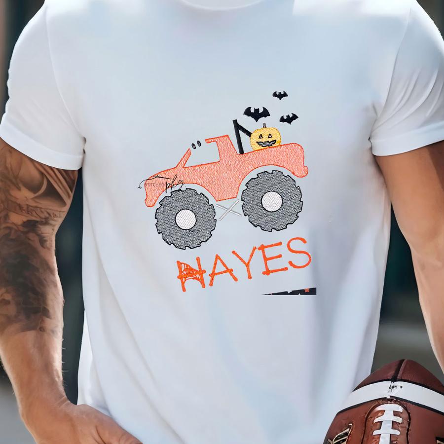 Spooky Ghost Monster Truck - Boy Halloween Shirt - Monster Jam Fan - Orange Black - Personalized Fall Holiday Shirt T-shirt