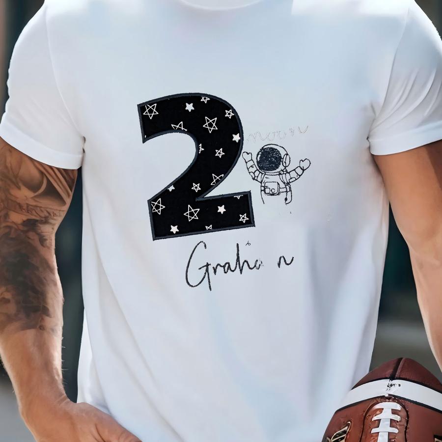 Two The Moon Birthday Number Shirt - Two Years Old - Birthday - 2 The Moon Theme - Applique Shirt - Toddler - Black White Silver T-shirt