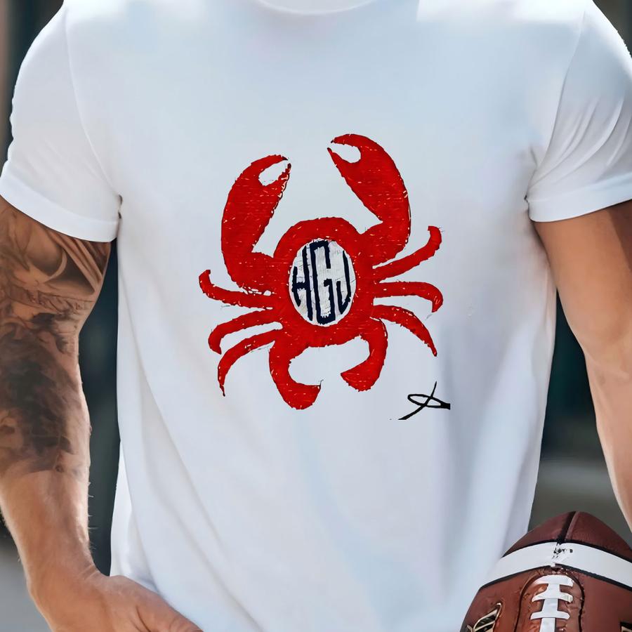 Crab Monogrammed Tee - Gray Hoodie - Personalized Monogram - Red Crab - Beach Tee - Summer - Boy Toddler Kid - Left Chest T-shirt