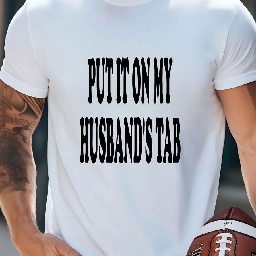 Put It On My Husband's Tab Trucker Hat, Foam Hat, Vacation Hats T-shirt