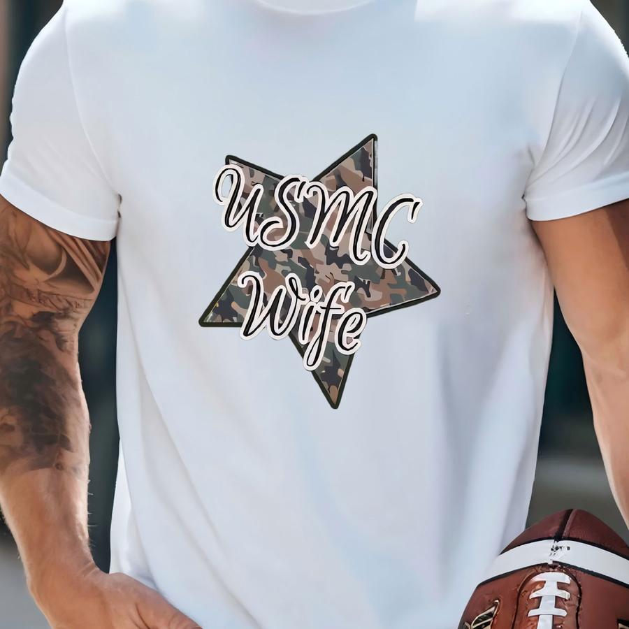 Usmc Wife Camo Star Tee, Patriotic Camouflage Hoodie, Unisex Casual Shirt For Wife, Veteran Support Apparel, Marine Wife Gift T-shirt