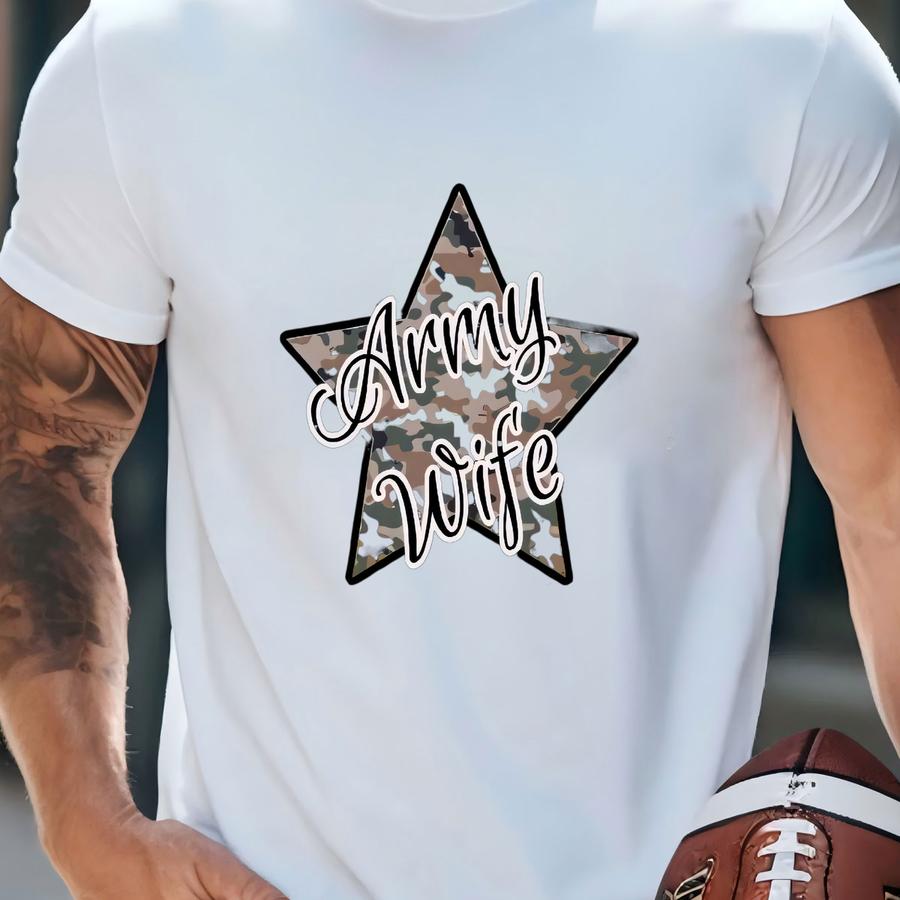 Wife Bdu Camo Star Tee, Patriotic Hoodie, Unisex Casual Shirt For Wife, Veteran Support Apparel, Military Gift, Military Wife T-shirt