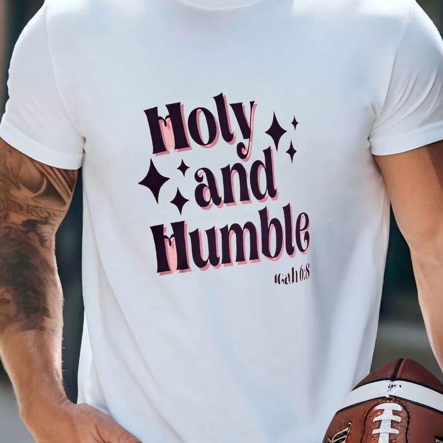 Christian Unisex T Shirt,holy And Humble In Purple And Pink Font Christian Gift T Shirt For Teens, Gen Z Bible Shirt Quotes, Religious Shirt T-shirt