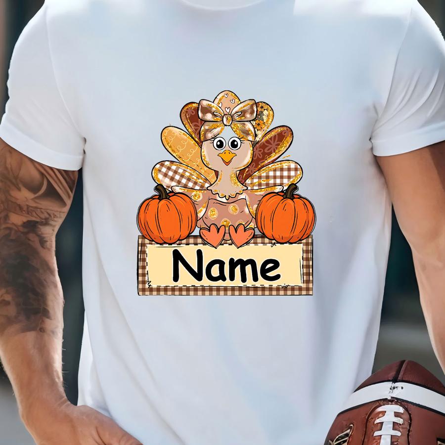 Thanksgiving Girl Turkey Dtf Transfer: Fall Pumpkin Personalized Shirt Decal Ready To Press T-shirt