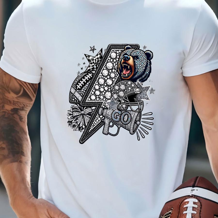 Bears Football Rhinestone Style Dtf Transfer: Team Spirit Shirt Decal Ready To Press T-shirt