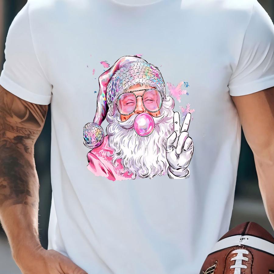 Santa Dtf Transfer, Cool Bubble Gum And Peace Sign, Christmas Iron-on, Unique Holiday Apparel, Easy To Apply, Ready To Press T-shirt