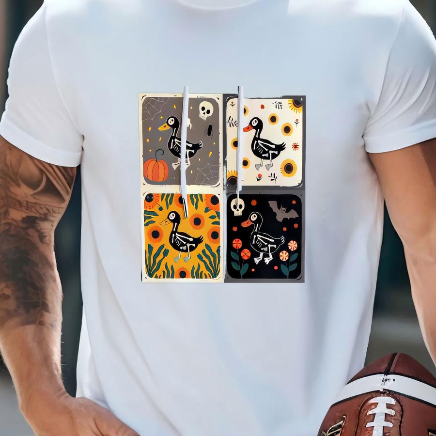 Cute Funny Goose Halloween With Pumpkin And Bat Print Shirt, Sweatshirt Or Hoodies T-shirt