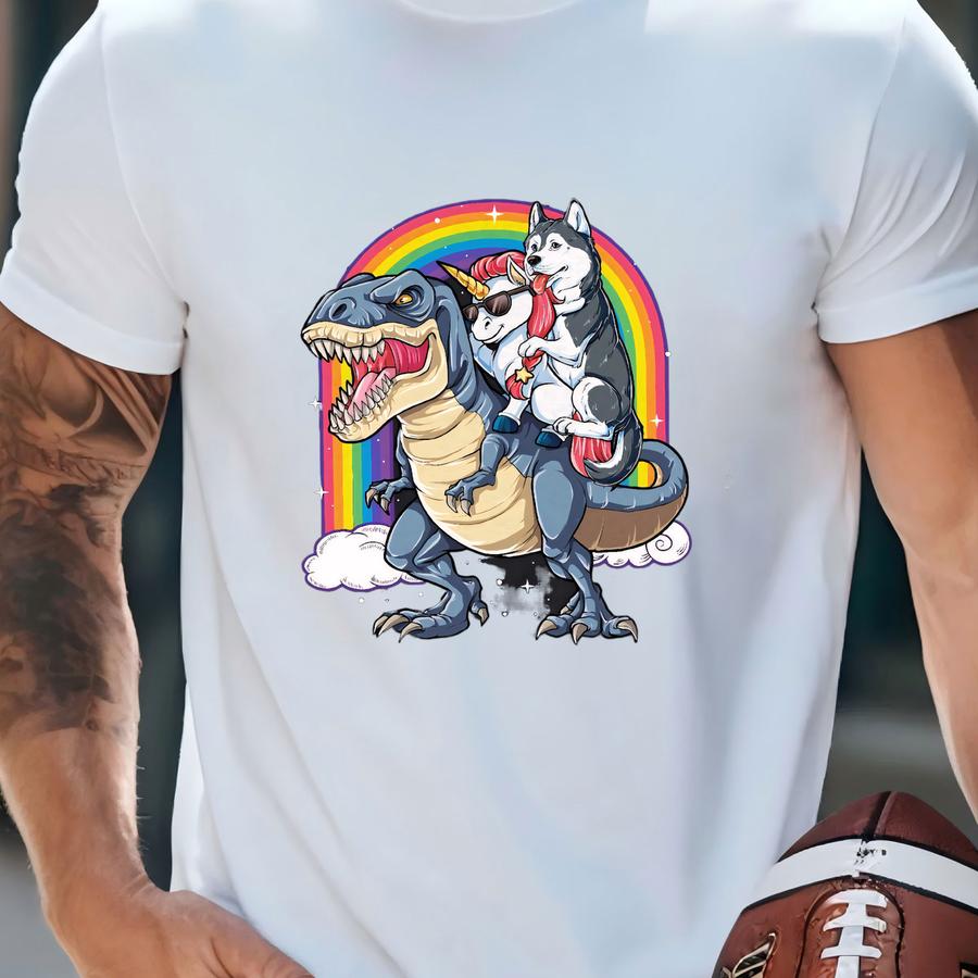 Siberian Husky Unicorn Dinosaur Shirt / Husky Dog / Siberian Huskies / Husky Gifts / Dinosaur T-rex / Rainbow Unicorn / Tank Top / Hoodie T-shirt