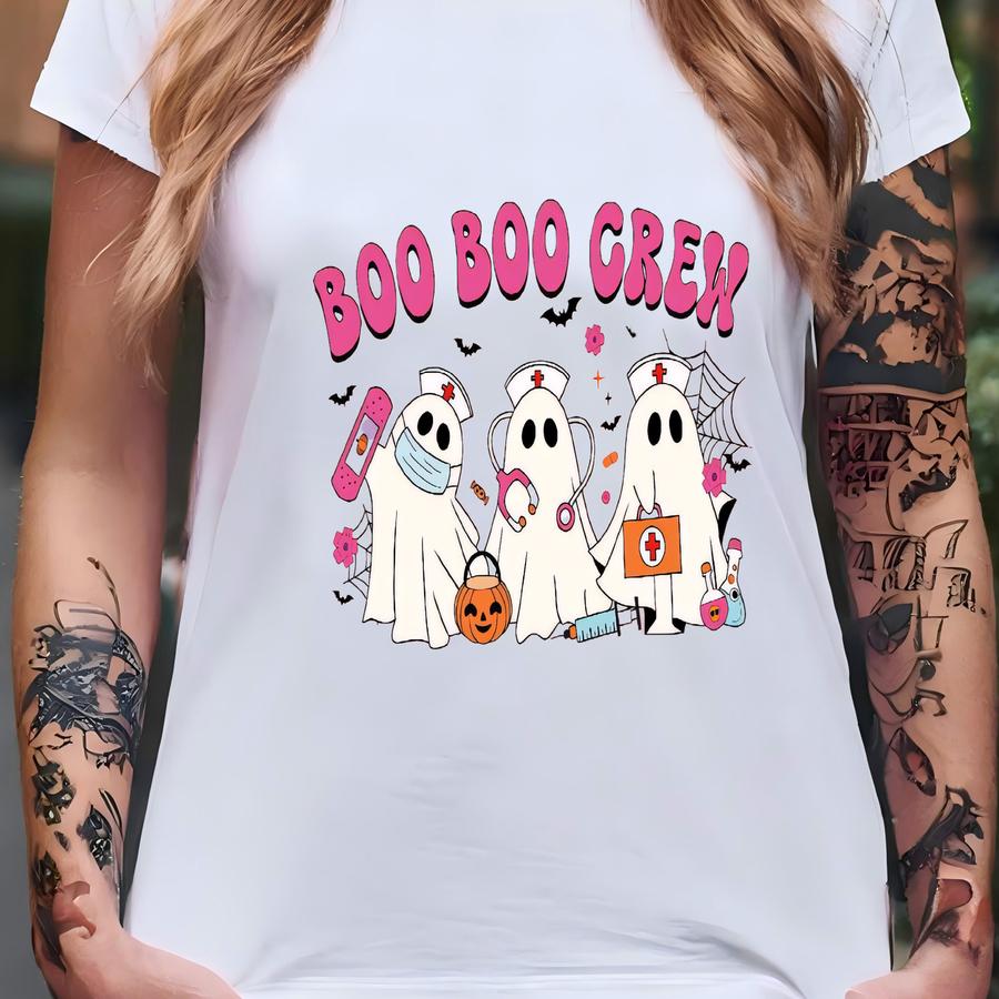 Comfort Halloween Hoodie For Nurse, Boo Boo Crew Shirt, Nurse Gift For Women, Retro Spooky Season Gift, Rn Lpn Gift, Funny Icu Nurse Shirt T-shirt