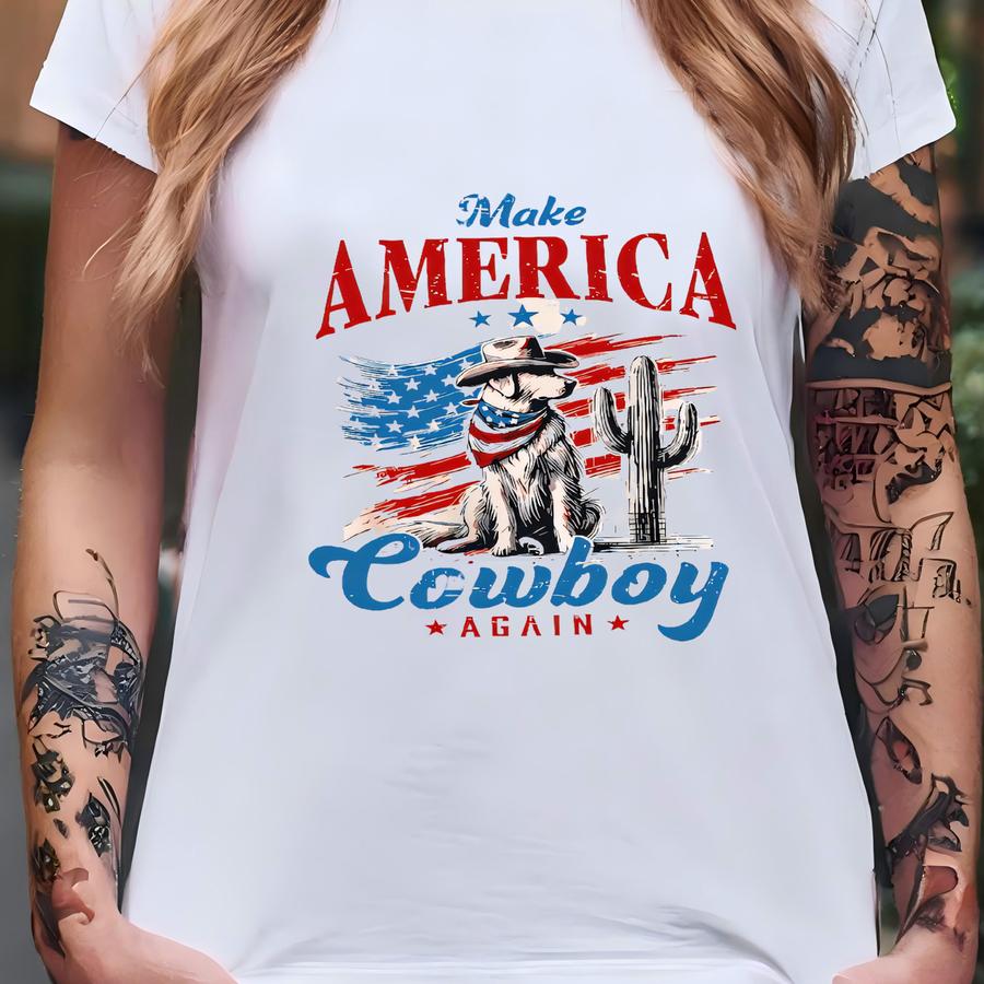 Retro Comfort Patriotic Cowboy Hoodie, Make America Cowboy Again Shirt, Western 4th Of July Gift, Dog Usa Flag Tee, Independence Day Shirt T-shirt