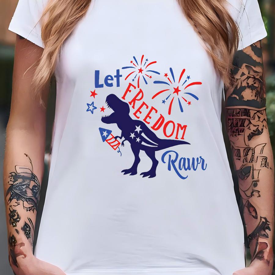 Retro Comfort 4th Of July Hoodie, Let Freedom Rawr Shirt, Patriotic Dinosaur Crewneck, American Kids Gift, Independence Day Outfit T-shirt