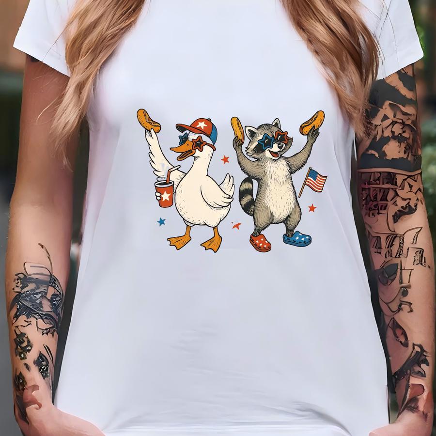 Retro 4th Of July Shirt, Red White And Hoodie, Patriotic Goose Crewneck, Independence Day Gift, American Raccoon Shirt, Freedom Tee T-shirt