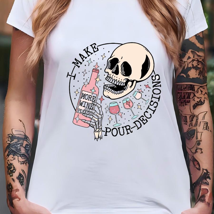 Retro Comfort Funny Wine Shirt, I Make Pour Decisions Skeleton Hoodie, Aesthetic Woman Shirt, Wine Lover Tshirt, Wine Lover Gift T-shirt