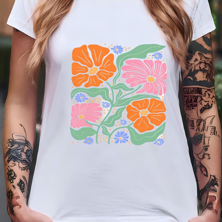 Retro Comfort Flower Shirt, Floral Mom Hoodie, Aesthetic Women Sweatshirt, Botanical Lady Gift, Flower Lover Crewneck, Cottagecore Tee T-shirt