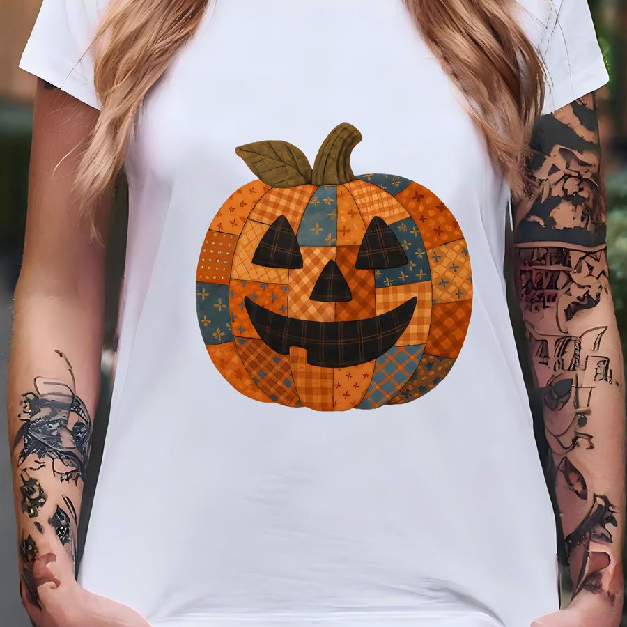 Retro Patchwork Halloween Pumpkin Sweatshirt, Halloween Pumpkin Shirt, Spooky Season Sweater, Halloween Cute Women Outfit, Halloween Gift T-shirt