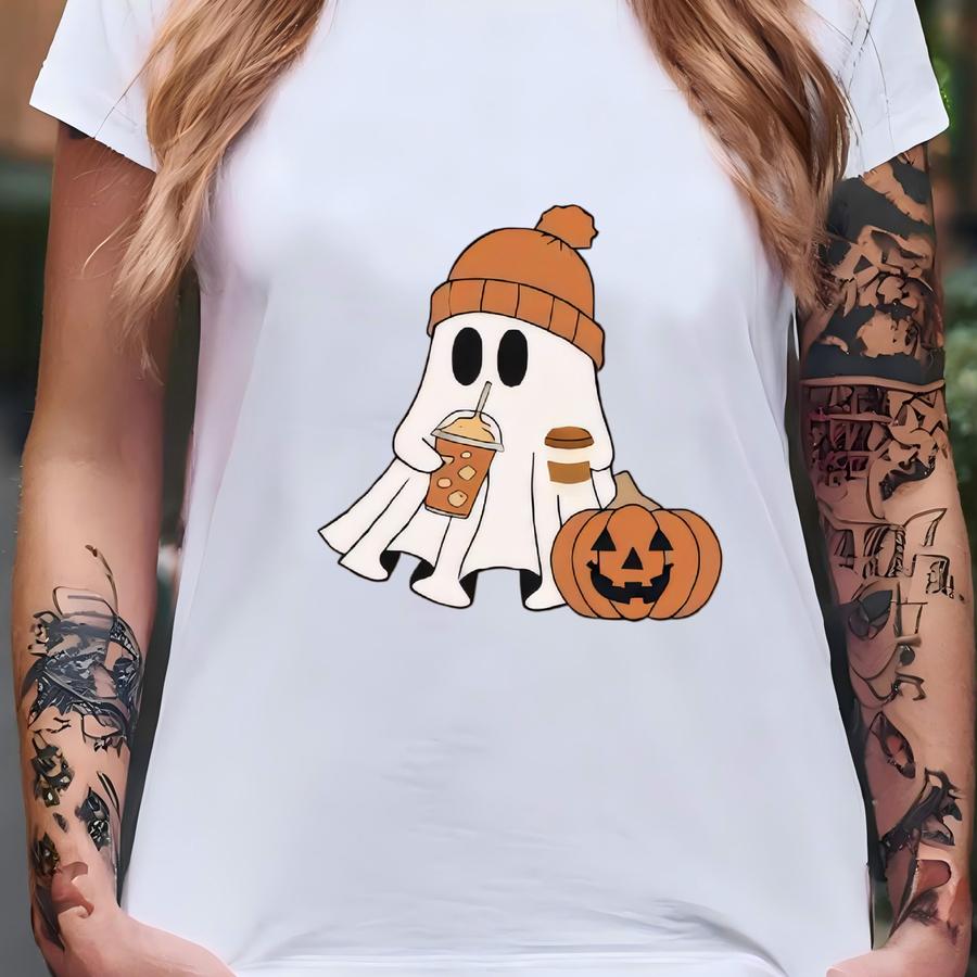 ® Сute Ghost Coffee Shirt, Сute Little Ghost Iced Coffee Hoodie, Boo Ghost Shirt, Ghost Coffee Shirt, Halloween Coffee Lovers T-shirt