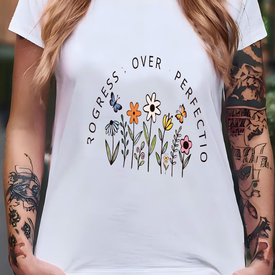 ® Progress Over Perfection Shirt Back To School Teacher Tee Preschool Teacher Gifts Floral Teacher Tshirt Teacher Appreciation T-shirt