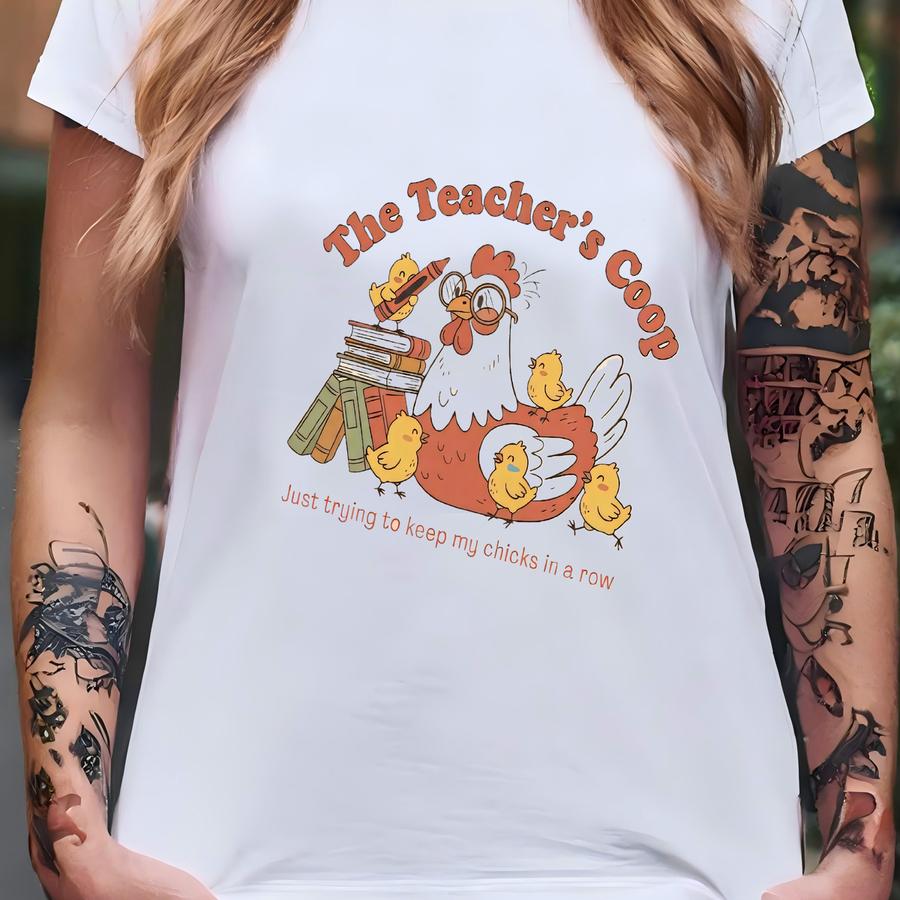 Chicken Teacher Shirt Farm Teacher Tee Chicken Gift For Her Retro Farmhouse Tshirt Teacher Appreciation Gift Back To School Tee Teacher Life T-shirt