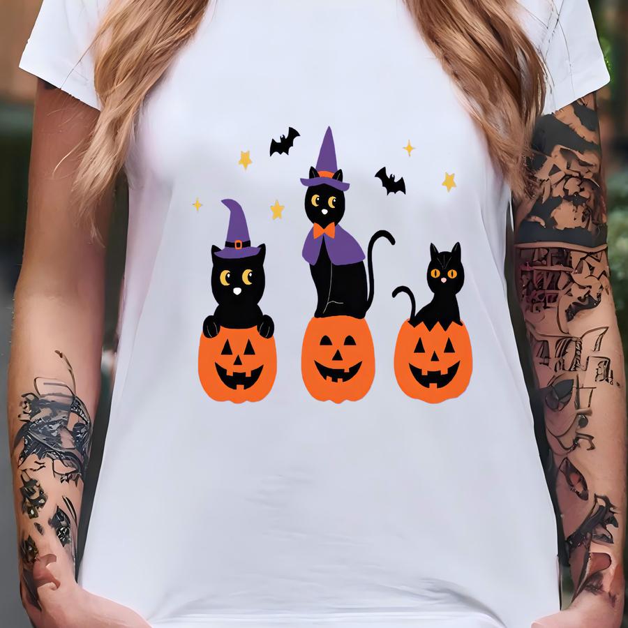 Black Cat Halloween Sweatshirt: Spooky Pumpkin Crewneck T-shirt