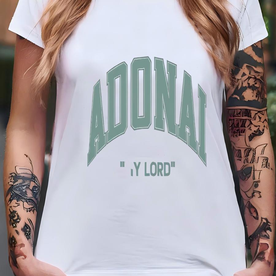 Christian Shirt For Women, Varsity Design Faith Tee, Christian Apparel For Women, Adonai Monochrome Color T-shirt